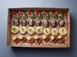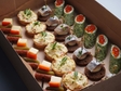 У складі бокса — по 7 штук кожної позиції: апетитна шпажка «Мисливська» з м’ясними нотами; пікантна корзинка із солоним сиром; класичне канапе з оселедця та ніжної сиркової маси на заварному хлібі; а також шпинатний рол з лососем, сиром «Каліфорнія» та червоною ікрою. Такий набір ідеально підходить як їжа у коробках для фуршетного столу або як зручні ланч-бокси для подій.