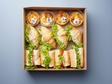 Кількість страв 12. Орієнтовна маса боксу 840 грам.Склад:- 4 Міні кіш з фетою та овочами- 4 Круасан "Цезаре"- 4 Міні сендвіч "Французький" 3 сири з овочами