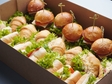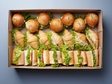 Кількість страв 21. Орієнтовна маса боксу 1610 грам.Склад:- 7 Міні бургер з яловичею котлетою, сиром та овоча- 7 Круасан "Цезаре"- 7 Міні сендвіч "Французький" 3 сири з овочами